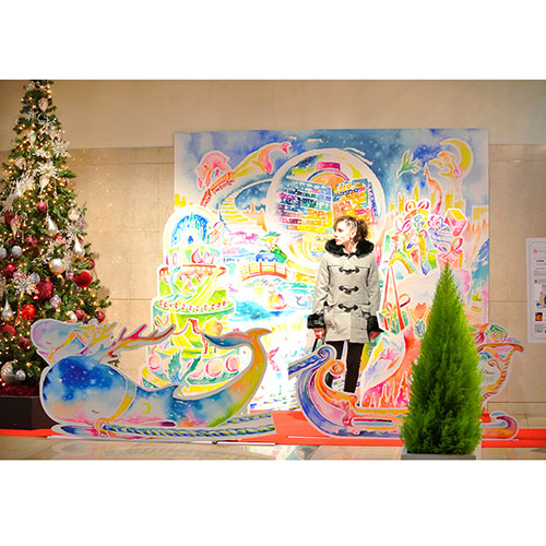 都内ホテルのエントランスに水彩画家による描き下ろしアートフォトスポットを設置いたしました。ファンタジー溢れるクリスマスの世界の中に観覧者が入り写真を撮影することができます。制作・造作・設置全て請け負いました。